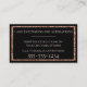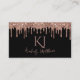 Det här affärskortet av snyggt har en glamorös, gigantisk utformning på en svart bakgrund. Ro guld glitter ligger över den översta delen. Monogram initialer placeras under glitter, följt av ett exempel på namn som skrivs ut i ett typsnitt av eleganten. På baksidan av affärskortet finns kontaktinformation med ram i ro guld glitter.