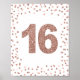 NUMMER 16-skylt med en vacker ro-guld-konfekti-design. Perfekt för din söta 16- eller 16-årsdag.