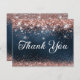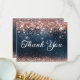 Skapa din egen elegant tack för att du hälsar på kort med den här moderna gigantiska faux glatt ro glitter och glatt ro guld diamant rhinestone konetti mot en marin blå folie av metall eller gradient bakgrund. Denna faux glatt ro guld, blå metall, kommer att vara perfekt för personlig gåva.