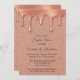 Fira din speciella dag med den glamorösa bröllopsinbjudan till ro guld. Med en skakande bakgrund i glitter och elegant metalliska droppar i guld i ro är detta en perfekt för det moderna bröllop med lite gnistra. Perfekt för möhippor, mottagningar eller någon luxe-romantisk händelse. Anpassa med dina bröllop-uppgifter om du vill ha ett riktigt häpnadsväckande meddelande.