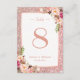 Bordsnummer-kort för ro Glitter Rosa Blommigt Guld Bröllop.