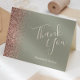 Den här eleganten är det moderna bröllop-tacket som du har ett kort med gräns från ro guld faux glitter på en sage grönt. Anpassadet kombinerar ord "Tack" i handskriftsskript för kräm och namn i briden och trimmen med kursivt teckensnitt.
