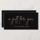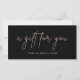 Ett enkelt och elegant ro guld-manuspresentkort med skript på svart bakgrund. Den här chicen med brev-skriptet "En gåva till dig" i ro guld glitter är perfekt för ditt varumärke och företag och ger en fantastisk gåva till dina lojala eller nya kunder. Du kan ändra bakgrunden och typsnittet färg till kostym till ditt eget varumärke färger.