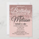 Glamoral, chic och elegant faux tryckte glatt ro guld glitter på rosa, Födelsedagsfest inbjudan. Den här klassiska och sofistikerade designen är perfekt för individen i klass, snyggt och trendig Birthday. Anpassa med ditt eget meddelande på framsidan och anpassat monogram på baksidan. All fotoutskriftsdesign