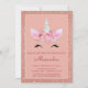 Ro Guld Gnistra Glitter Magic Unicorn Monogram Namn och Initial Födelsedagsfest inbjudan. Denna inbjudan är perfekt för Födelsedagsfesten Glitter Unicorn i Ro Guld att tittar fira i Rosa ros Gnistra.