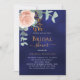 En marin blå färgad bakgrund. Den blå färg är ojämn. Dekorerad med en blommigt för guld och rosa, blomma från ro och grönt, vattenfärgad eukalyptus löv, sprig, grönsak och faux ro sprig. Anpassa och lägg till bridens namn för att vara och närmare party. Vit och guldfärgad färgad. Bakåt: Tungt blå, ojämn färgad.