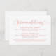 Kortet för hotellrum i bröllop i Modern ro guld och vitt (färg kan ändras) har en snyggt typografi med kalligrafi av chic och hjärtaccent. Den enkla och elegant anpassningsbar som kan vara personlig för två hotell med kontaktuppgifter och rumsblocksinformation.