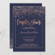 Ro konetti marinblått typografi i par duschar bröllop med ro guld och midnattblått.