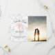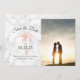 Be dina gäster att spara din bröllop-dejt med den här enkla eleganten som innehåller ditt foto, modernt skript, kol-grått-text och en ro-guld-kopparkonstnärlig handflatan träd över en marmorbakgrund. Anpassa den med foto, datum för bröllop, namn och plats.