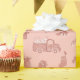 Denna mindre rosa ro som ligger vid jul och ligger i och som omsluter pappert har mönster som ligger i mjukt färg med guld och lastade med lastbilar och matriser, Julgranar och annat klockor hand plockade. Slå in dina vinter-Helgdagar med ett sött, glatt mönster.