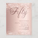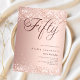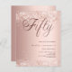En modern inbjudan till snyggt för 50:e födelsedagsfesten. Dekorerad med konetti. guld och övertoningsbakgrunden i ro och ord 50 skrivna med elegant stort skript brev i mörk ro guld. Anpassa och lägg till information om namn och party. 1 lakan = 1 inbjudan tryckt kant till kant.