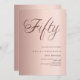 En modern inbjudan till snyggt för 50:e födelsedagsfesten. guld och övertoningsbakgrunden i ro och ord 50 skrivna med elegant stort skript brev i mörk ro guld. Anpassa och lägg till information om namn och party.
