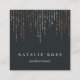 Elegant och enkel design i ett unikt fyrkantigt format har klassisk vit text på en rik mjuk svart bakgrund med lodrät strängar av faux-folie-sträng av ro-guld ljus som överlappar uppifrån. Anpassa framsidan med ditt namn och ditt företag namn eller din verksamhet och lägg till din fullt kontaktinformation på baksidan. Ett vackert val för vilket yrke som helst. Ett exempel som visas för estetiker.