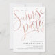 Modern inbjudan till överraskningspartiet innehåller party-skript för snyggt calligraphy och glitter i faux ro guld foil färg, ren och enkel, underbar inbjudan till vuxen på överraskande födelsedag för alla åldrar. Den vita bakgrunden färg kan ändras till valfritt färg.