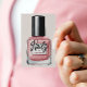 Modern, snyggt, chic Nail Technician-affärskort. Utformningen har nagel polsk flaska med ro guld nagel polsk bakgrund, typografiskriptet naglar och namn / salon namn på framsidan. Anpassa ytterligare med kontaktuppgifter, social-media och qr-kod på baksidan.