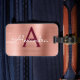 Ro Guld - Rosa och Burgundy Marsala Brushed Metall Foil Monogram Namn och Initial Luggage Tag. Den här väskan är märkre för Back to school, Arbete eller Resning.