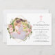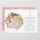 Bekräftelseinbjudan till rosa och ro guld ro blommigt med ett guld-geometriskt ram. Ett fyrkantigt format foto rekommenderas.
