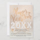 Inbjudningskort för glam från nyårsafton med trendig av metallisk kopparhand med texten "Gott nytt år" och vita diamanter över en glansig bakgrund för faux foil från blek guld. ++++++++++ Anpassa det med året och dina uppgifter om party! ++++++++++ Lämpligt för både personliga och företagsmässiga händelser.