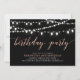 Gratulera till din speciella dag med den här snyggten moderna födelsedagsfest inbjudan-mallen. Den här designen har en vacker sträng ljus med temat ro guld och svart färg. Du kan anpassa texten till valfri ålder/milstolpe. Det finns fler inbjudningar till vuxarna och party-artiklar på min butik BaraBomDesign.