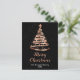 Det här vykortet för elegant och chic helgdag kan vara personlig med din familj namn. Utformningen har ett ribbat Julgran i ro guld med en stjärntopp. Texten kombinerar handskript och modernt sans serif typsnitt för ett klassligt och sofistikerat utseende. Den fallande snö, snöflingor och gnista ge är en festlig och magisk beröring.