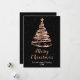 Det här helgdag för elegant och chic kan vara personlig med din familj namn. Utformningen har ett ribbat Julgran i ro guld med en stjärntopp. Texten kombinerar handskript och modernt sans serif typsnitt för ett klassligt och sofistikerat utseende. Den fallande snö, snöflingor och gnista ge är en festlig och magisk beröring.