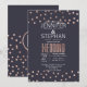 Elegant, chic och modern faux-tryckt ro guld polka dots och marin blå bakgrund, bröllopsinbjudningar. Denna klassiska och sofistikerade utformning är perfekt för det trendig och det snyggt som gifter sig. Anpassa med ditt eget meddelande på framsidan och en anpassad inledande monogram på baksidan. All fotoutskriftsdesign.