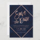 Ro Guld-typografi på marinblå vattenfärg och faux ro guld rand-chic sparar bröllop, perfekt för elegant, snyggt bröllop.