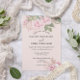 Dagens moderna typsnitt stjäl nästan lampan från mjukt rosa ros elegant, förbättrat med grönt och ro guld-förskönningar som dekorerar toppen och grund hörnet av denna lustiga rosa bröllopsinbjudan. Ordalydelsen är den nya traditionella: "tillsammans med sina familjer", där brudgummen och brudgummen ger inbjudan. Bakgrunden är en blek som är något dunkel rosa, fram och bak, och texten är svart. Kortet ger ett utrymme för parets foto, inramat i djup himmelsfärisk rosa och med parets namn nedan, eller ta bort fotoområdet för ett kort som är en söt rosa. Det är enkelt att byta ut din information mot platshållare. Klicka bara på den personliga länken om du vill börja.