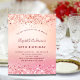 En modern, snyggt och glamorös inbjudan till en kvinnas 50:e (eller någon ålder) födelsedagsfest. En ro guld och rosa övertoning med konetti. Namn är skrivet med ett modernt handskript i stil. Anpassa och lägg till information om party. 1 lakan = 1 inbjudan tryckt kant till kant.