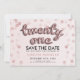 Eleganten "21:a födelsedag Party Spara datum" har utformats med Ro Guld Rosa Balloon Brev & Glitter CONetti, och har ett eget namn och en egen text. Imponera på din familj och dina vänner med den här snyggten och den glamorösa designen. Lätt att använda och lätt att anpassa. Ordna i dag!