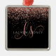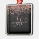 Glam Ro Guld Glitter Elegant Monogram Ornaments. Anpassa enkelt chicen av dekorationer i trendiget med elegant ro guld mousserande glitter mot svart bakgrund. Designen har ditt handskrivna skriptmonogram med söt-snurrar och ditt namn.