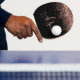 Glam Ro Guld Glitter Elegant Monogram Ping Pong Paddle. Anpassa enkelt trendigets chic pingpongpadlar som har elegant ro guld mousserande glitter mot svart bakgrund. Designen har ditt handskrivna skriptmonogram med söt-snurrar och ditt namn.