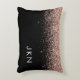 Svarta och Ro Guld - Rosa Gnistra Glitter Monogram Namn och första pelaren. Kudden gör perfekten söt 16 födelsedag, bröllop, möhippa, babydusch eller bachelorette-gåva till någon som dekorerar hennes rum i ro guld.