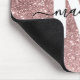 Personlig Rosa Glitter Initial Monogram Mouse Pad. Med den här musknappen på snyggten kan du blunda och eleganta på arbetsytan. Med ett faux guld rosa glitter, ett vitaktigt första brev och ett elegant svart skript namn, är detta en perfekt för alla som ro ett feminin och lyxaktigt utseende. Den här musmattan är perfekt för sorterande systrar, studenter eller professioneller och ger en tankfull gåva till mammor, vänner eller någon som uppskattar personlig, chic. Perfekt för födelsedagar, helgdagar eller speciella tillfällen blandar glamor och funktioner för att höja den dagliga arbetsytan.