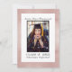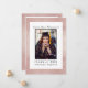 Ett modernt, minimalistiskt studenten-meddelande med ett vitt ram framför ditt foto. Baksidan har ett annat foto och mer information om student.