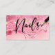 Modern, trendig, glatt Nagelteknik affärskort. Utformningen har chic, glatt bakgrund i rosa och ro guld färg, nagel polerpensel och flaska, typografi-skript naglar i svart text. Anpassa med ditt namn på framsidan och detaljer på baksidan.