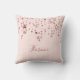 En elegant, en glamorös kudde för ett gigrum, insida. Faux ro guld, kopparblanka och glitterstjärnor. Light ro guld, rosa bakgrund. Skriv in ditt namn på framsidan med ett modernt handskript i stil. Ro guld färgad brev.