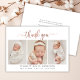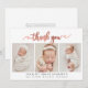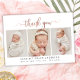 Modern Elegant Chic Ro Guld Script 3 Photo Collage Newborn Baby Tack Birth Notification Card. Har en söt "tack"-text i en handskriven kalligrafi som snabbt byter ut svan-typsnittet i rosa ros FAUX-fotskript i guld mot vit bakgrund. I förväg framtagna personliga budskap och födelsestatistik med baby namn ingår. Underbar för flicka. Enkel att anpassa med ditt baby-foto och din information.