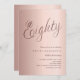 En modern inbjudan till snyggt för 80:e födelsedagsfesten. guld och övertoningsbakgrunden i ro och ord 80 skriven med elegant, stort skript brev i mörk ro guld. Anpassa och lägg till information om namn och party.