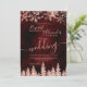 Det är dags att fira ert vintertema bröllop med den lyxmässiga ro guld-gnistor i snöflingor och glitter i ro i glitter i guld i gräs i en träd höggradig rödbrug bakgrund med en modern elegant typsnitt.