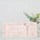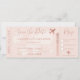 En modern och coola Spara datumskriptet världskarta flygplan-påstigningskort i faux guld-folie och redigerbar rosa i pastellform, perfekt för destinationsbröllop.