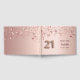 En gästbok för en girig och glamorös 21-årsdag party. En faux ro guld-bakgrund med ro guld, rosa, droppstjärnor. Anpassa och lägg till namn och datum. Namn är skrivet i mörk ro guld med ett modernt handskript i stil. Nummer 21 skrivs med ett stil-teckensnitt med ballong.
