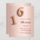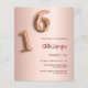 En modern, snyggt och glamorös inbjudan till en flickvän 16, 16:e födelsedagsfesten. En övertoningsbakgrund för ro guld. Namn är skrivet med ett modernt skript för färgaden ro guld i mörk, skrivet med stil. Anpassa och lägg till information om party. Nummer 16 skrivs med ett stil-skript med ballong. 1 lakan = 1 inbjudan tryckt kant till kant.