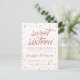 Elegant och modern "Sweet 16 ( sexton ) Födelsedagsfest"-design med Ro Guld & White Glitter Gnistra Confetti Dots-motif, samt anpassad namn och detaljtext. Lätt att använda och lätt att anpassa. Ordna i dag!