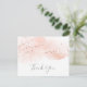 Det här guld-ro-vattenfärgskortet är perfekt för ett elegant bröllop. Den visuella designen har neutralten rosa vattenfärg med vackra faux ro guld glitter. Anpassa kortets baksida med namn och ett tackmeddelande. Du kan också lämna avsnittet med tackmallen tomt om du vill att skrivan ska innehålla en anteckning om personligen på varje kort när de har anlänt. Dessa kort kan användas för en bröllop, möhippa eller en speciellare händelse.