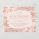 Tropiska babyduschinbjudningar med faux ro guld botaniska löv i handflatan och löv mot bakgrunden för pastellernas rosa. Ord "BABY BRUNCH" visas i samma chic faux ro guld med snyggt typografi för dina babyduschdetaljer.