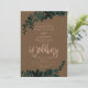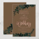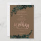Ro guld typografi Blommigt Brun bröllopsinbjudan med handmålad grönt vattenfärgsblad. Den bruna färg-bakgrunden är fullt anpassade