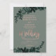 Ro typography Blommigt grått bröllopsinbjudan med handmålad grönt vattenfärgsblad. Grönten färg har full anpassade