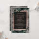 En modern, chic och elegant ro typografi Blommigt jul vinterbröllopsinbjudan med handmålad grönt löv blad på ett rostfritt, stripat brunt trä med vitt guld och grönt.