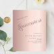 En modern minimalistisk Quinceañera-inbjudan. Ro guld och ord Quinceanera är skrivna med stort brev. Anpassa och lägg till information om namn och party. 1 lakan = 1 inbjudan tryckt kant till kant.